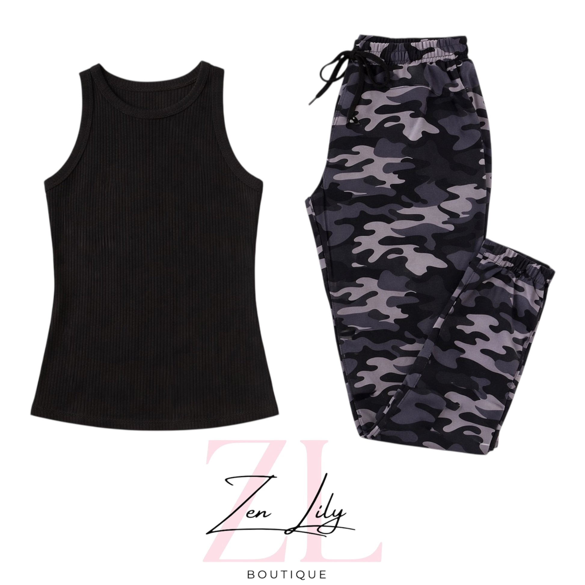 Relaxed slouchy fit with a drawstring waistband and side pockets.