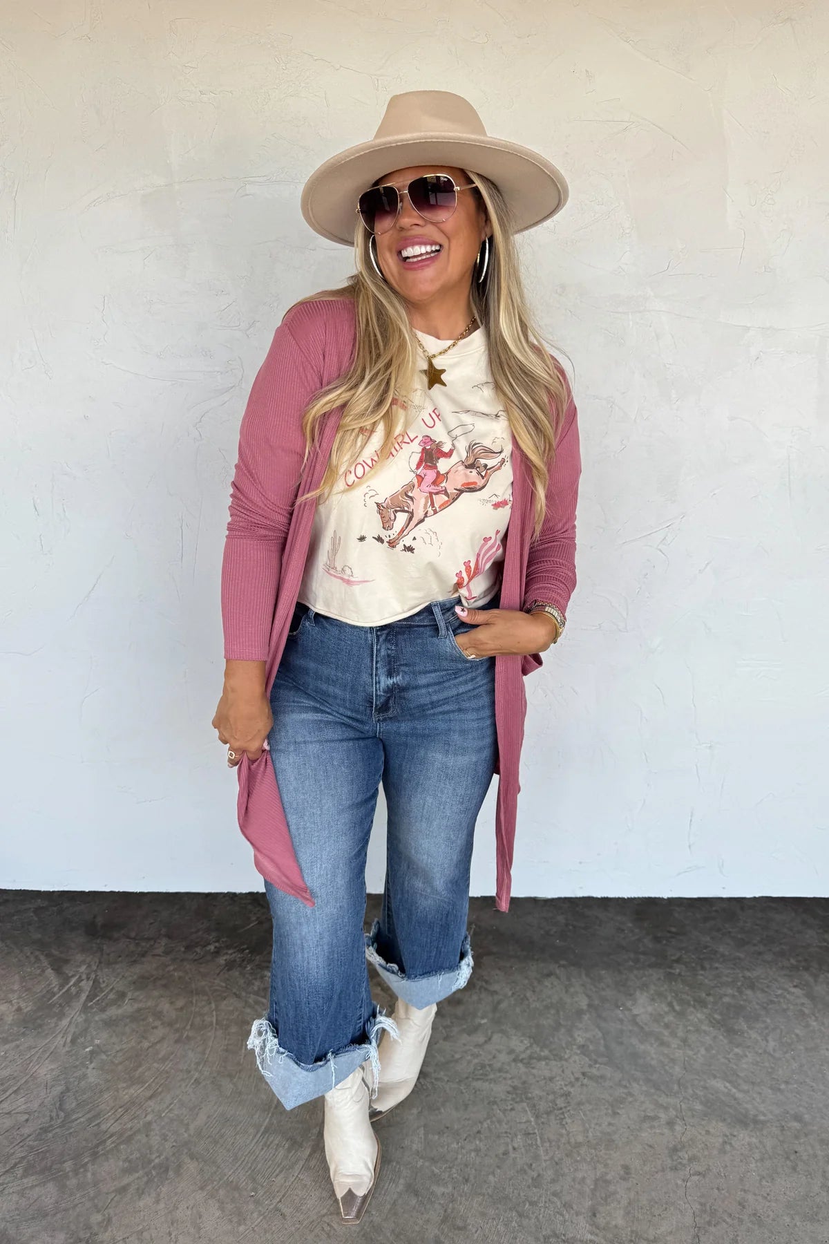 One of Blakeley's all time best selling jeans now come in a NONdistressed style! So many of her customer's had requested this same style with no knee distressing...so voila! These jeans feature a crop flare style, raw ankle hem. High rise waist