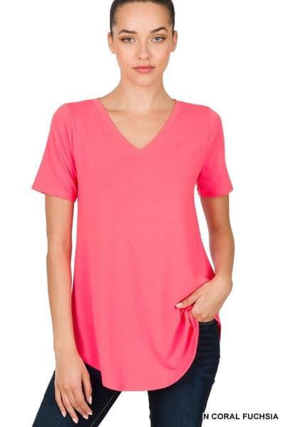 V Neck Round Hem Tee